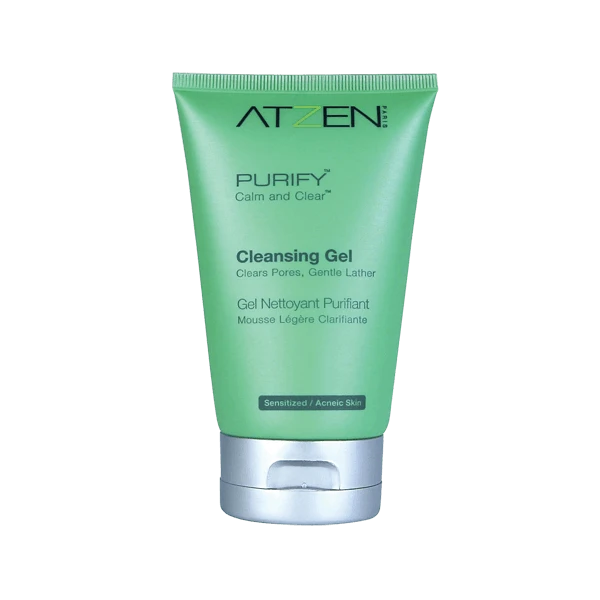 ATZEN Cleansing Gel is a 2 in 1 product that is an excellent soap substitute and skin treatment. Deep cleansing of sebum/oil, pollution, P-acnes bacteria that is responsible for breakouts, and light makeup while protecting the skin’s natural acid mantel and hydration (the acid mantel protects the skin from pollution and premature aging; soap, SLS, or alcohol included in commercial cleansers destroy the acid mantel). Far superior to a regular cleanser: It is the first step of a skin treatment for problem skin and is tolerated by all, even sensitive skin and those under dermatology care. Safe if you wear contact lenses and for sensitive eyes.