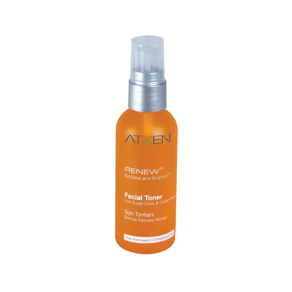 ATZEN Renew: Facial Toner is a new generation toner and face mist; lightens complexion, exfoliates surface and inside pores while preparing the skin to be more receptive to active ingredients, serums and moisturizers. This formula is a treatment product with numerous skin lightening, brightening and light peeling agents, as well as powerful and innovative nutrients. Restores acid mantel. Alcohol-free.
